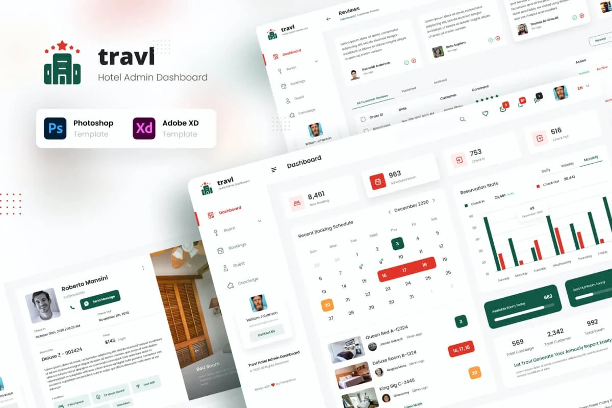 文章标题:旅行-酒店管理仪表板PSD和XD模板